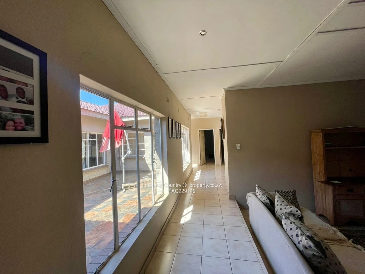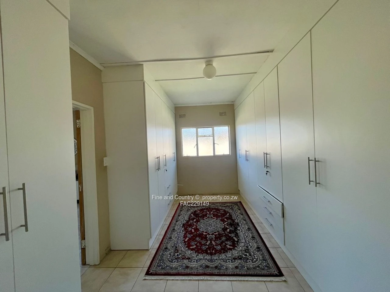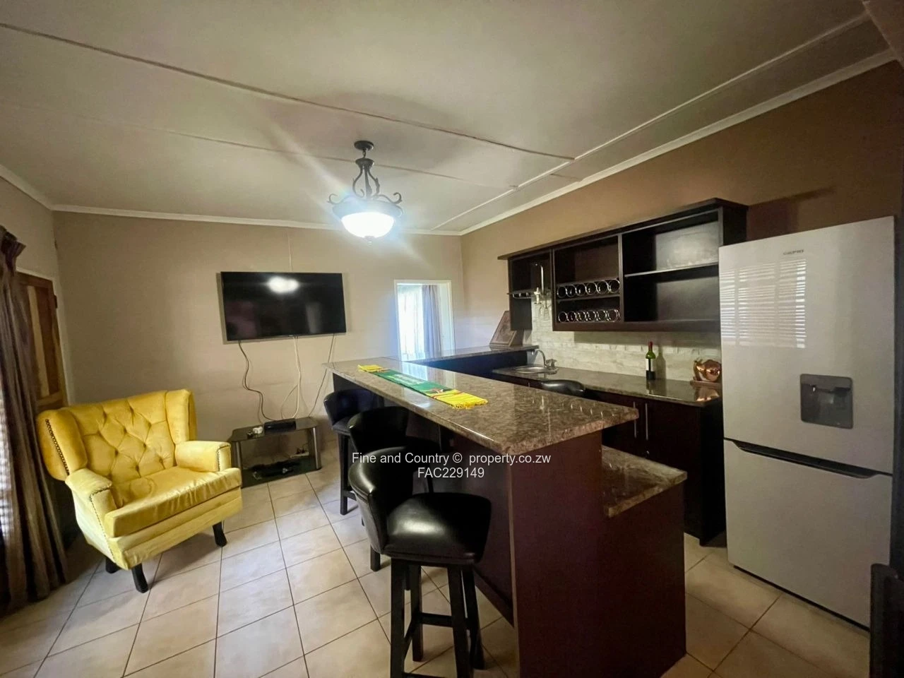 Elegantly appointed single-storey family home for rent in sought-after Norwood, Bulawayo North. This fully furnished spacious 4-bedroom, 4-bathroom residence sits on a generous 3,642 m² plot (details list building area as 1.50 acres) and is set behind a sweeping paved driveway with abundant parking. The house greets you with a wide, covered veranda overlooking manicured lawns and mature gardens — perfect for outdoor living and entertaining. Inside, bright formal and informal living areas feature high ceilings, tiled floors and plenty of natural light; the formal dining room adjoins a modern, well-equipped kitchen with a central island, breakfast bar and ample cabinetry. Bedrooms are roomy with built-in cupboards and the master suite offers privacy and an ensuite bathroom. Additional highlights include multiple bathrooms with quality fittings, comfortable family lounge areas, a separate casual dining space and practical laundry/utility zones. The established gardens provide shade and serenity, with mature trees and lawned areas for children to play or for weekend gardening. A dependable borehole supplies water, an important asset in the area. Ideal for a large family seeking a tranquil, well-located home close to schools, shopping and major routes in Bulawayo North. Available for immediate occupation — contact to arrange a viewing.